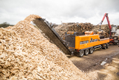 Auf dem Vorführgelände des VDMA ist neben der Weltneuheit DHS 514 Selector auch die leistungsfähigste mobile Hackertechnologie zu sehen. Ein DH 910 SA mit schwenkbarem Heckband, statt Auswerfer, zeigt das Zusammen-spiel von höchster Durchsatzleistung und Hackschnitzelqualität.
