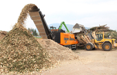 Zuverlässig und wirtschaftlich zerkleinert der robuste Großhacker DH 910 SA-B mit schwenkbarem Heckband von Doppstadt Stammholz, Wurzelholz, Astschnitt und Restholz zu gleichmäßig dimensioniertem Hackgut.