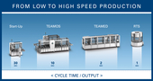 Ebenfalls taktstark, aber spezialisiert auf die Montage und Prüfung komplexer medizintechnischer und pharmazeutischer Produkte, arbeitet die Plattform TEAMED. Je nach Auslegung und Komplexität der Prozesse erreicht sie eine Jahresleistung bis zu 50 Millionen Stück. Die Anlage kann bei steigenden Stückzahlen ausgebaut werden und ist vom Handarbeitsplatz für kleinere Stückzahlen bis zur vollautomatisierten Hochleistungsautomation aufrüstbar. Dabei übernimmt TEAMED die Prozesse aus der Prototypenproduktion der klinischen Phasen I und II direkt in die Serienproduktion. Kritische Prozesse werden so vorab in der späteren Originalkonfiguration verifiziert. Dies gibt den Verantwortlichen von Anfang an Sicherheit für die zukünftige Serienproduktion. Ergänzend zu diesen anspruchsvollen Prozesstechniken ist eine 100 Prozent End-of-Line-Prüfung in die Plattform integrierbar.