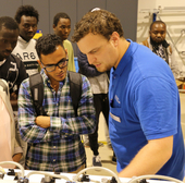 Eingeladen waren Flüchtlinge unter anderem aus Ländern wie Syrien, Afghanistan und Kongo, die nun in Freiberg und Stuttgart wohnen. Auch für die Auszubildenden von Teamtechnik wurde es ein spannender Nachmittag: Sie stellten die Berufsbilder, die im Unternehmen ausgebildet werden, in englischer Sprache vor. Beim anschließenden Rundgang über das Firmengelände waren die Gäste von so viel Hightech beeindruckt.